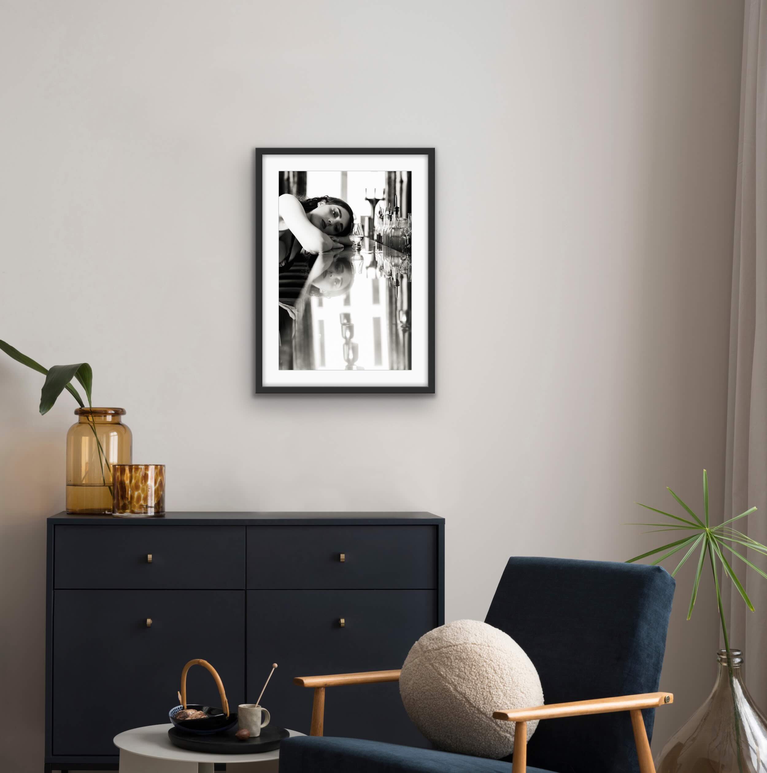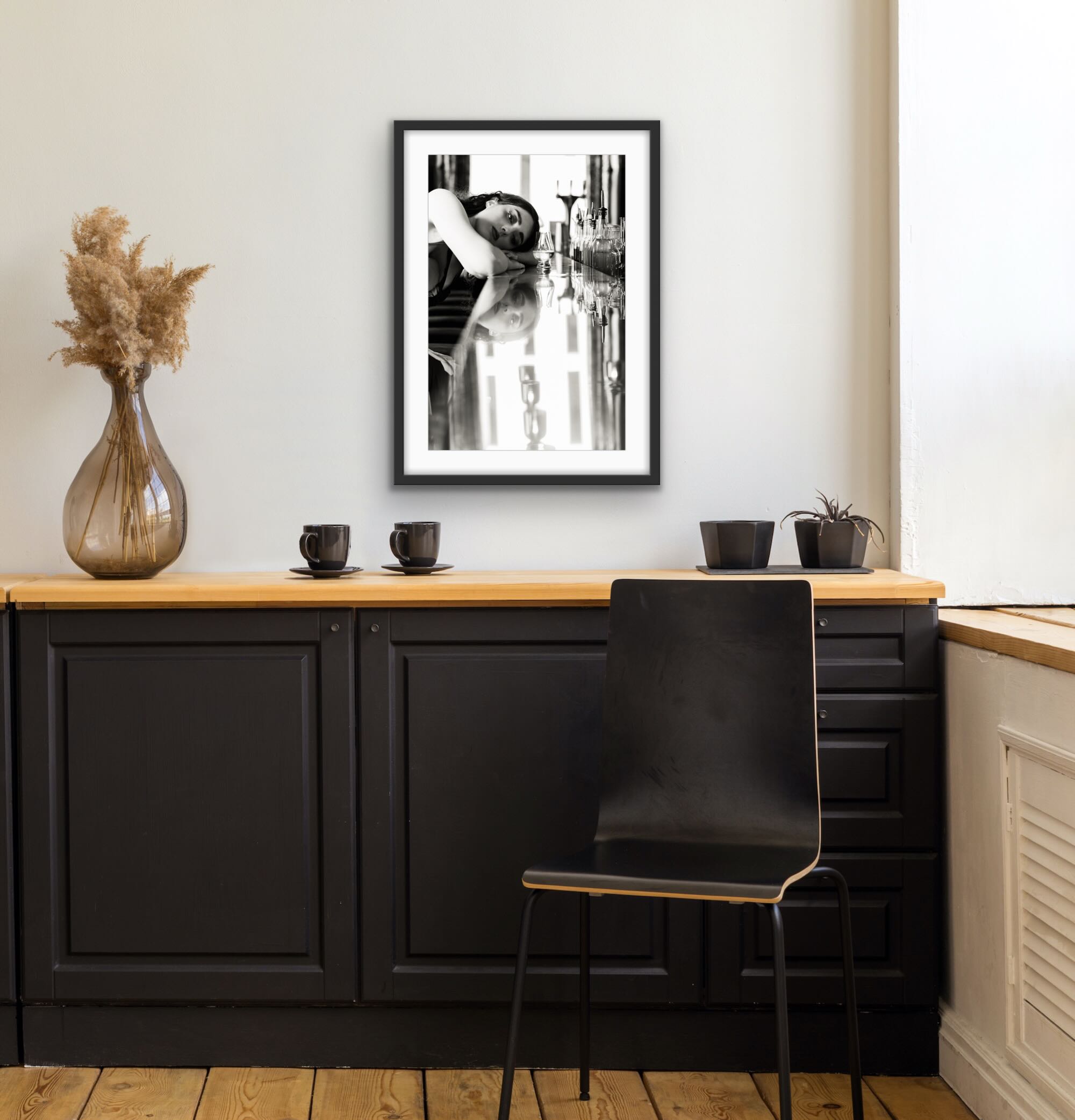 Absente Présence est un portrait en noir et blanc d’une femme perdue dans ses pensées, front posé sur un bar, face à un verre vide. Son reflet flou évoque l’attente, le manque, peut-être un rendez-vous manqué. Tirée de la série Kokoro No Kioku, cette photographie d’art capture l’instant suspendu entre présence réelle et absence intérieure. Un cliché poétique, intime et universel tiré en 10 exemplaires.
