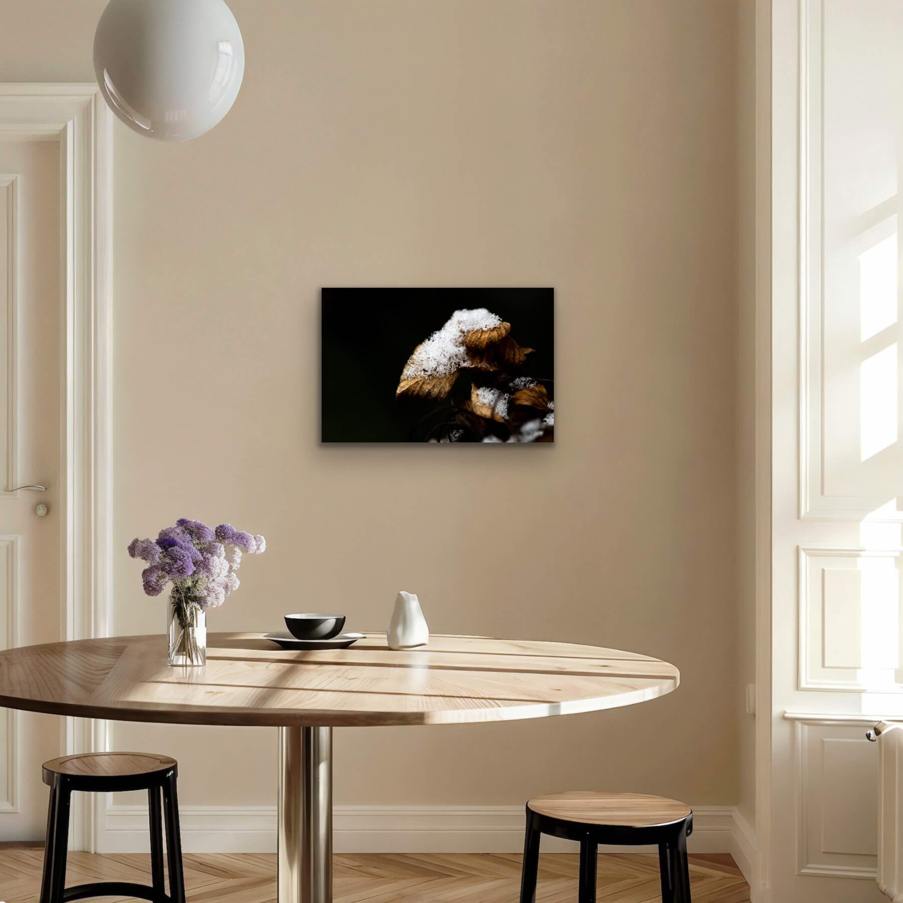 Mémoire Silencieuse capture la délicatesse d’une feuille marquée par l’hiver. Une lumière précise révèle le givre comme une écriture secrète. Cette œuvre, tirée en série limitée à 10 exemplaires, offre une présence calme, rare et élégante. Idéale pour un intérieur raffiné, elle invite à contempler le temps qui passe et ce qu’il retient encore. Tirage signé, numéroté, certificat inclus.