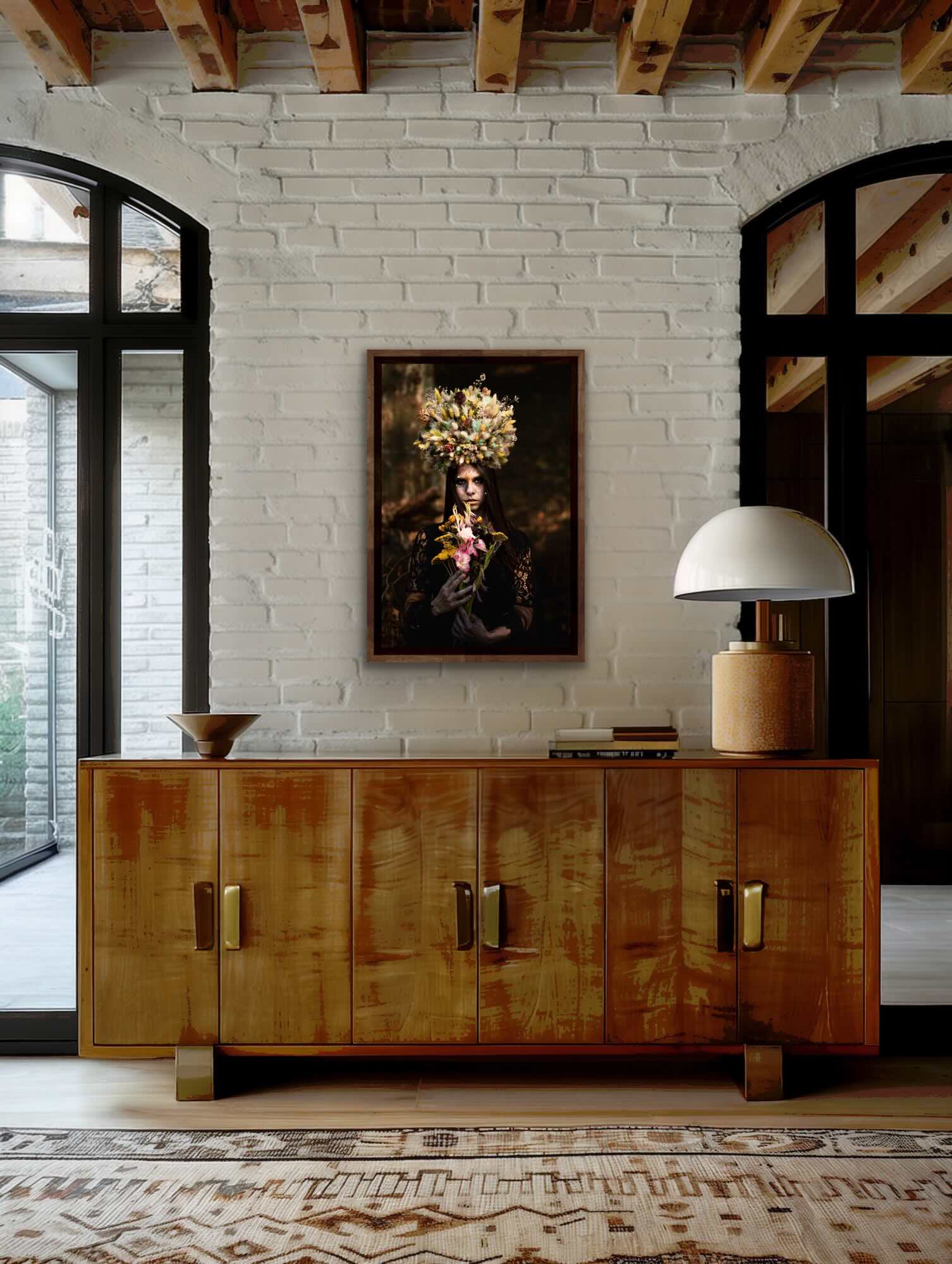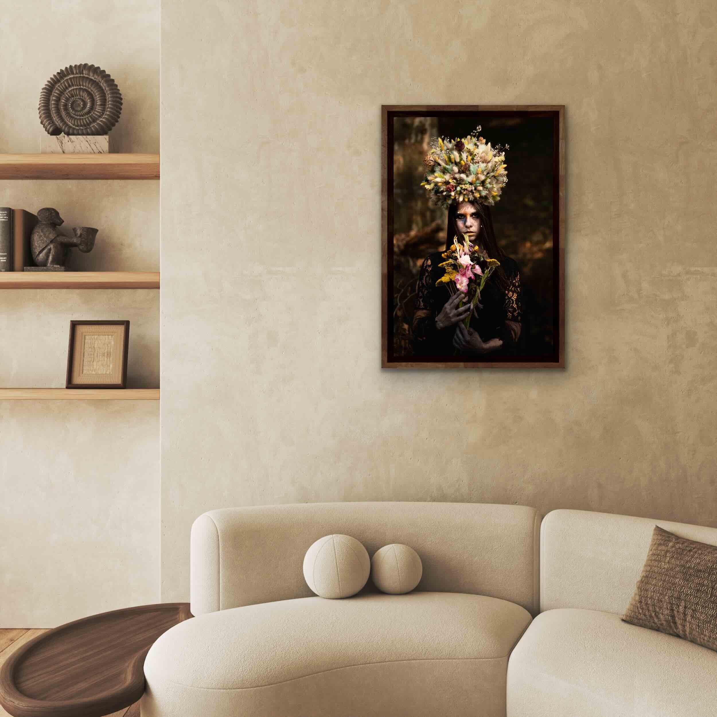 Offrande Sombre est une image pensée pour habiter un espace. Dans un salon, une chambre ou un bureau, elle devient plus qu’un décor. Elle impose une atmosphère.
