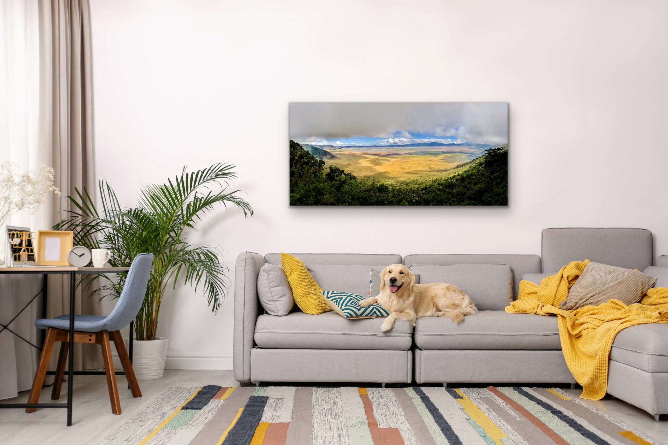 Sanctuaire capture la magnificence du cratère Ngorongoro en Tanzanie. Cette photo offre une vue spectaculaire sur la végétation luxuriante et les étendues d’eau scintillantes. Avec ses couleurs vibrantes et sa lumière magnifique, elle invite à explorer la beauté brute de ce sanctuaire naturel. Parfait pour ajouter une touche d’aventure et de nature sauvage à votre intérieur. Un cadeau idéal pour les passionnés de voyages et de nature.
